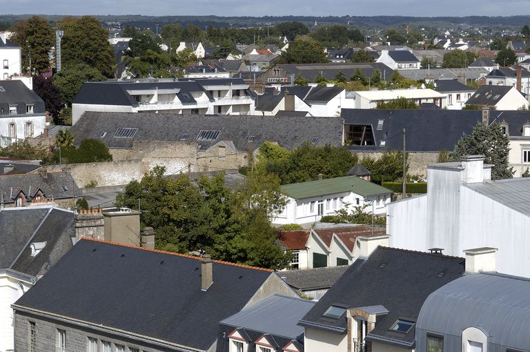 Vue prise de la cité administraive montrant une partie des entrepôts.Immatriculation