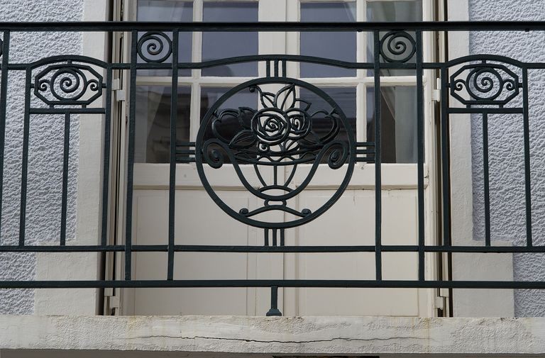 Elévation antérieure, détail du balcon.Immatriculation