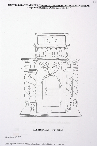 Tabernacle, état actuel (d'après un dessin de D. Lefèvre, A.C.M.H.). Atelier Régional de Restauration - Château de Kerguehennec.Immatriculation