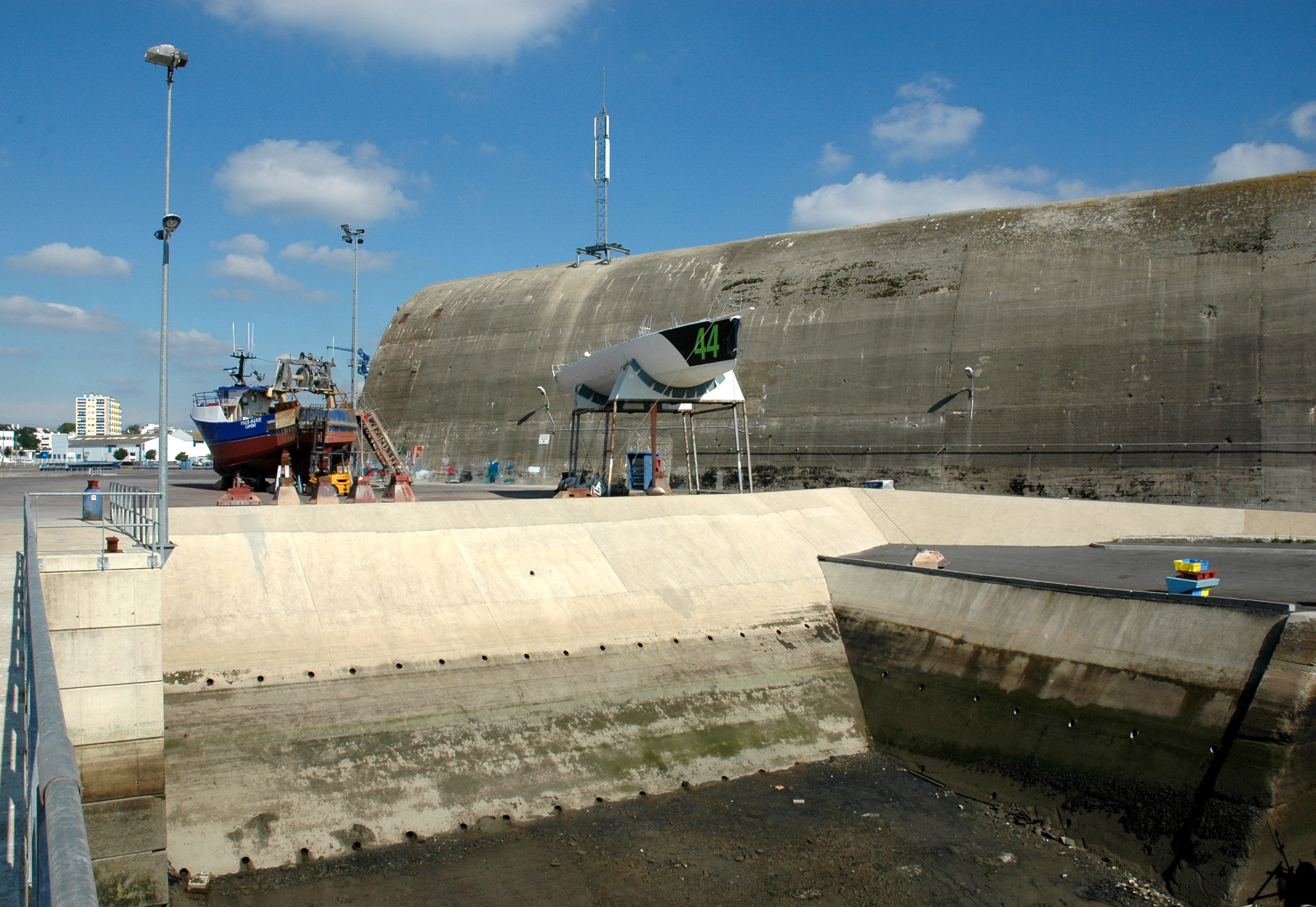 Dom-bunker Est dit "T5" puis entrepôt, aire de réparation navale, port de pêche de Keroman (Lorient),