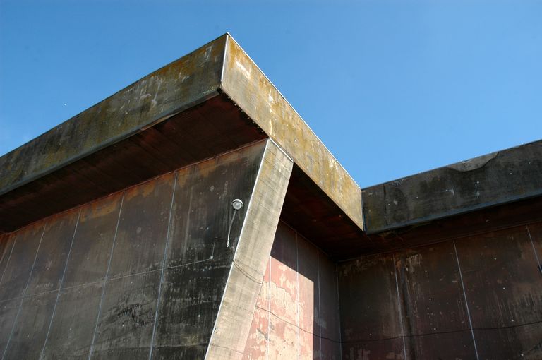 Vue de l'élévation ouest située derrière les docks : contrefort et dalle de couverture (2005)Immatriculation