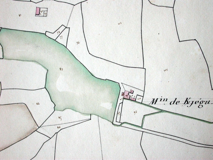 Moulin de Kerjégu. Plan cadastral 1829, section Q (AD Morbihan, 3P 493)Immatriculation