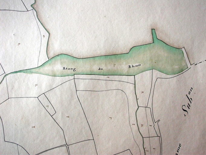 Moulin du Rhun. Retenue. Plan cadastral 1828 (AD Morbihan, 3P 493).Immatriculation