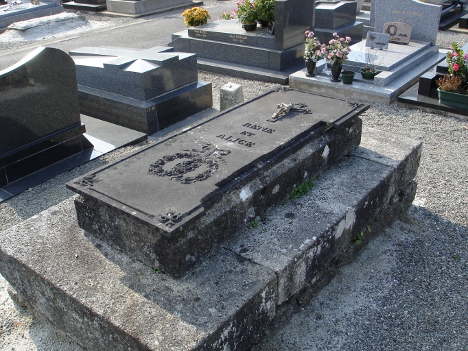 Tombe plate repérée, marbre blanc noirci, inscription René et Alice, sans date, vers 1860Immatriculation
