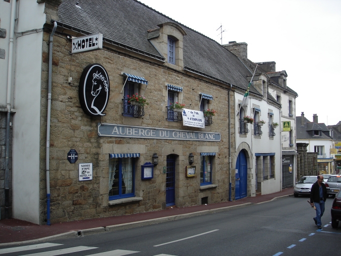 N°16 rue de Pontivy. Maison (auberge), moellon, façade modifiées, limite 18e siècle 19e siècle, en alignement avec maison de type ternaire enduite, vers 1900. Section AH, parcelle 200Immatriculation