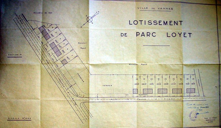 Plan du lotissement de Parc Loyet, 1952. AM Vannes 1O221.Immatriculation
