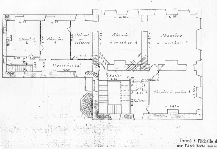 Autre plan du 1er étage (distribution nouvelle) par Bassac, le 28 juillet 1894. Fonds privé Taslé.Immatriculation