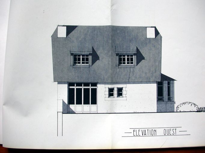 Projet de façade ouest, par Arhuis, 1982. Archives privées.Immatriculation
