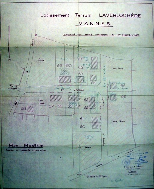 Plan modifié du lotissement Laverlochère, 1956. AM Vannes 1O221.Immatriculation