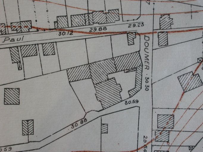 Plan de la ville par Guillerminet, Ministère de la Reconstruction, 1947 : détail. AM Vannes 9Fi.Immatriculation
