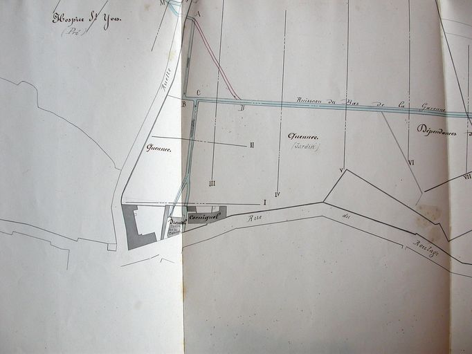 Règlement d'eau du moulin des Lices, plan général du 19 septembre 1864, détail : tannerie Corniquel. AD Morbihan S1083.Immatriculation