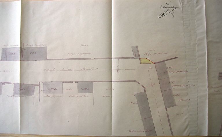 Projet de classement de la rue Hersart de la Villemarqué : plan signé de Thiévard, 14 oct 1931 : partie médiane. AD Morbihan 3O 2182.Immatriculation