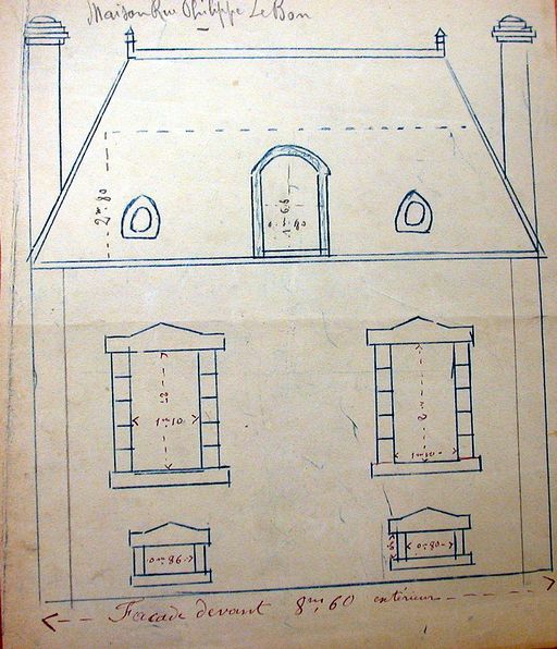 Elévation de la façade sur rue de la maison de Rey. AM Vannes 5I162.Immatriculation
