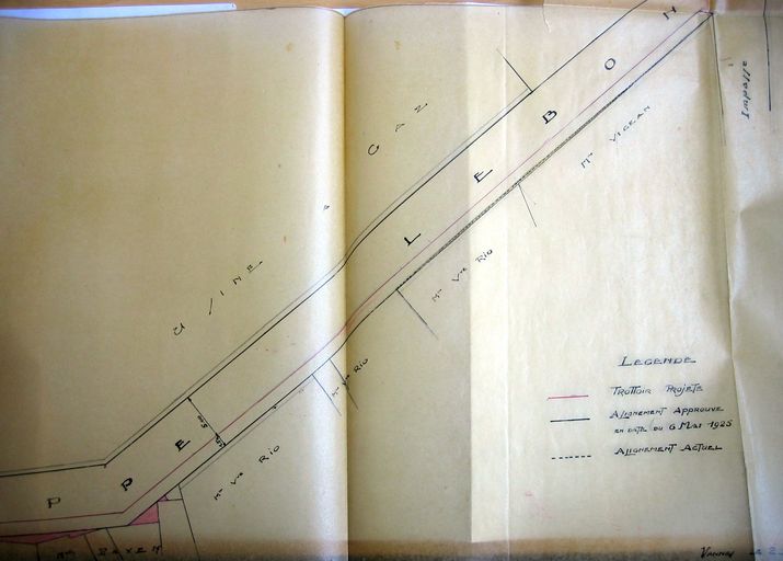 Projet d'établissement de trottoirs dans la rue Philippe Lebon. Partie sud, plan par Thiévard, 2 décembre 1930. AD Morbihan 3O 2182.Immatriculation