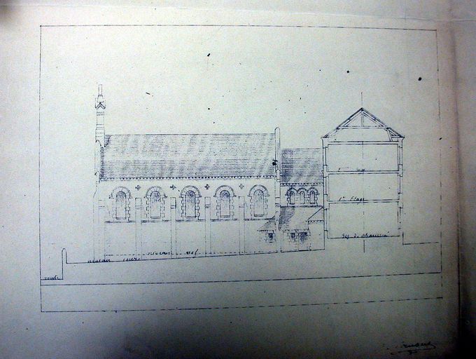 Elévation sud de la chapelle Sainte-Anne de l'école d'hydrographie par J. Caubert de Cléry, 12 mai 1910. AM Vannes 5 I 162.Immatriculation