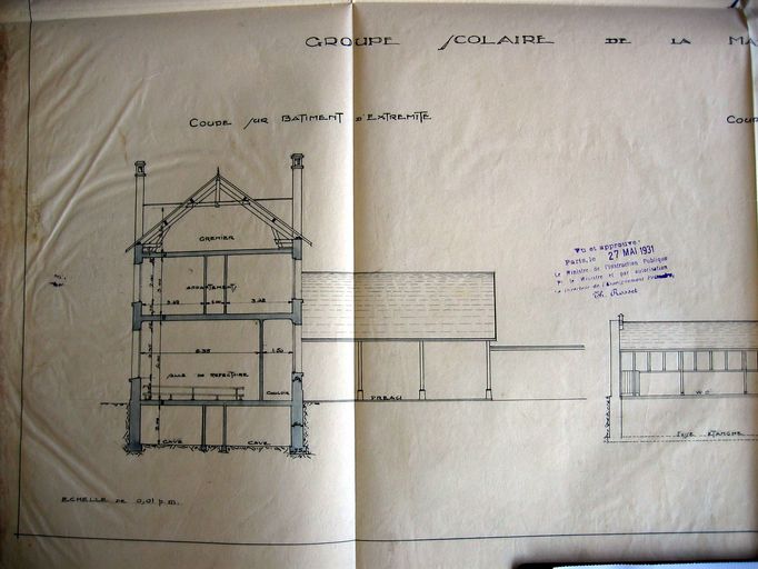 Coupe sur le bâtiment d'extrémité, dressée par Thiévard, 30 juillet 1930. AD Morbihan 2O 260/12.Immatriculation