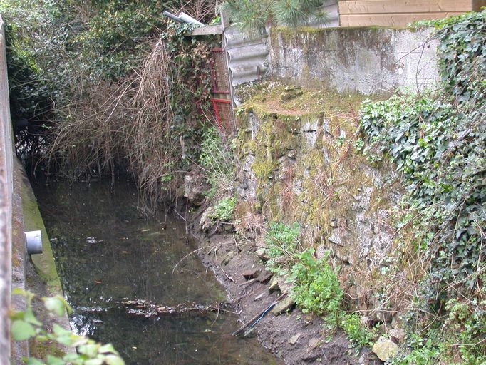 Vue du canal d'écoulement du ruisseau proche du bassin du Pont-Vert.Immatriculation