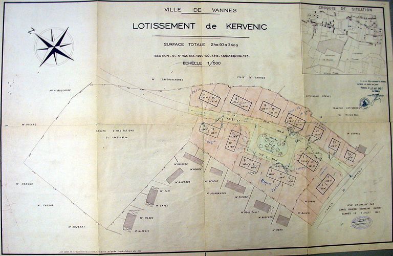 Vue générale : plan du lotissement de Kervenic par A. Couedel, 1963. AM Vannes 1O221.Immatriculation