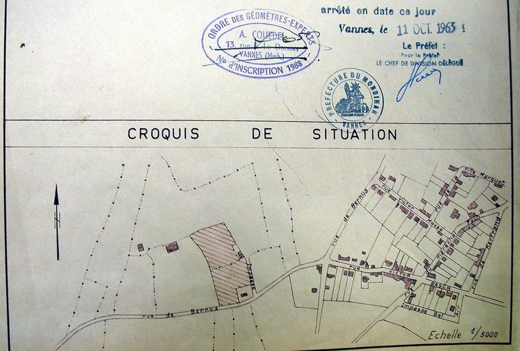 Plan de situation du lotissement Simon, 1963. AM Vannes 1O221.Immatriculation