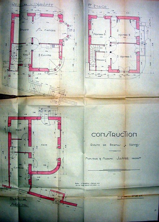 Plans au sol de la maison Jaffré par Santin, 20 juillet 1939. AM Vannes 5I162.Immatriculation