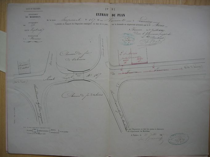 Plan d'alignement de la maison Morio, juillet 1867. AD Morbihan S1552.Immatriculation