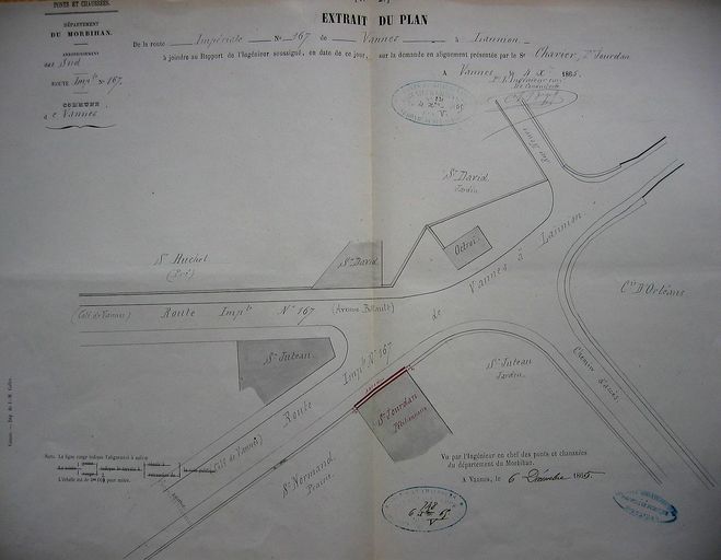 Plan d'alignement de la maison Jourdan, octobre 1865. AD 56 S 1552.Immatriculation