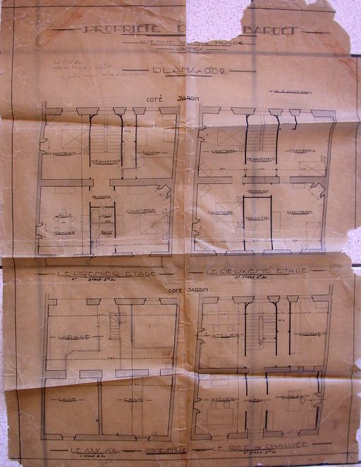Plan des étages de la maison par Jules Bardet,s.d. Fonds privé André Lamourec.Immatriculation