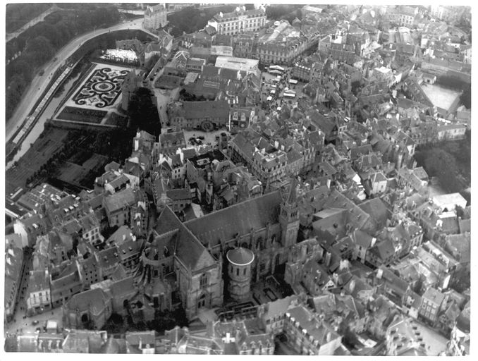 Vue aérienne de la ville remparts est vers 1950. Fonds privé.Immatriculation