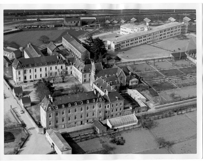 Vue aérienne de l'ancien hôpital général vers 1950-1960. Fonds privé André Lamourec.Immatriculation