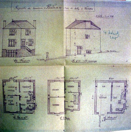 Plans de la maison Bihan, 1939 par d'Esclavelles. AM Vannes 5I162.Immatriculation