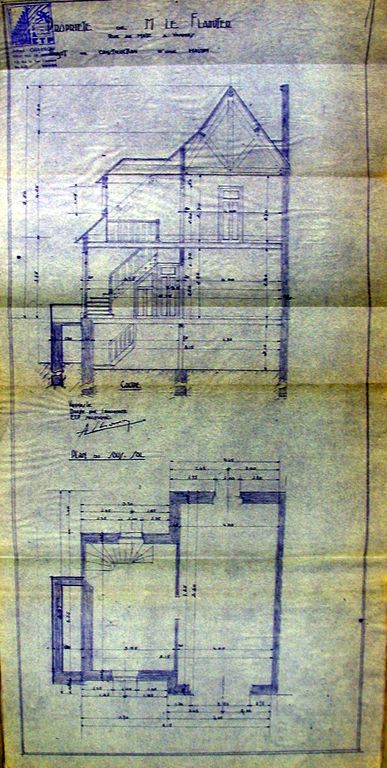 Coupe et plan du sous-sol de la maison construite pour Mr La Flaouter par A. Charron. AM Vannes 5I162.Immatriculation
