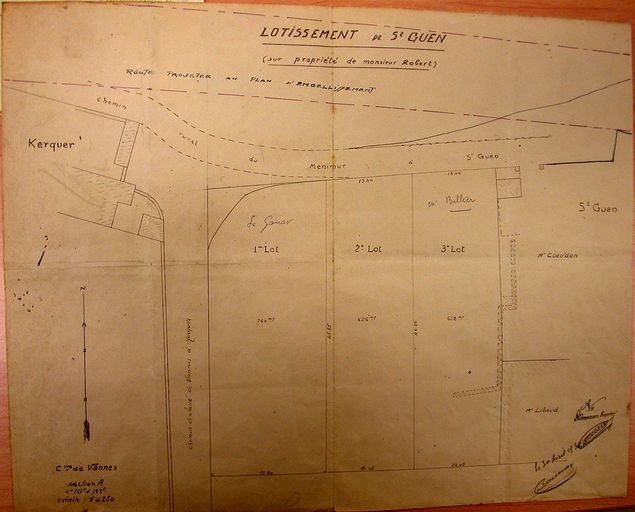 Plan des lots du lotissement de Saint-Guen, 1931. AM Vannes 1O221.Immatriculation