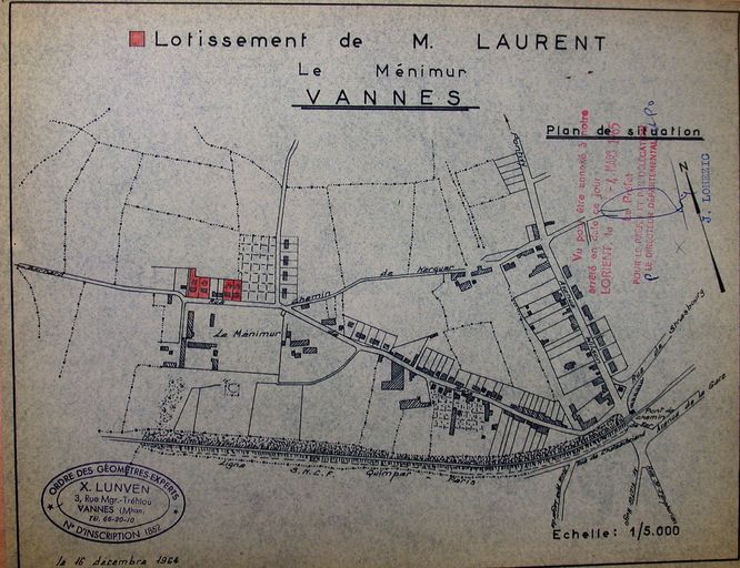 Plan de situation du lotissement Laurent modifié. AM Vannes 1O221.Immatriculation