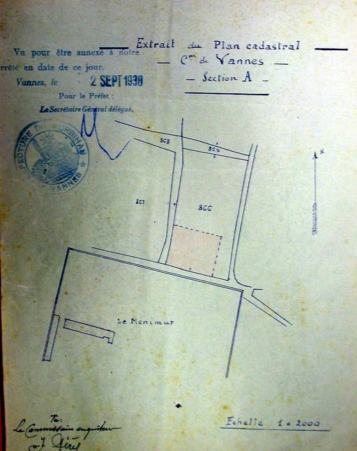Vue générale : plan de situation du lotissement Turnier, 1938. AM Vannes 1O221.Immatriculation
