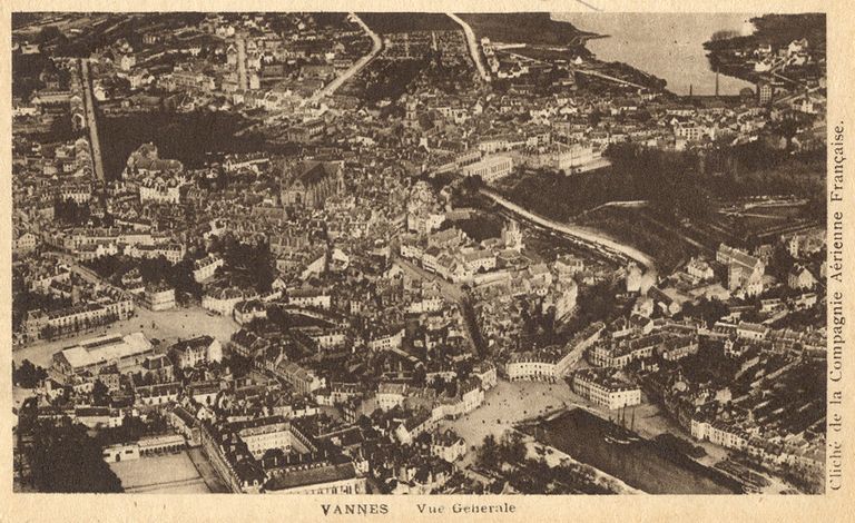 Vannes, vue générale aérienne, vers 1930? Cliché Compagnie aérienne française. Fonds privé.Immatriculation