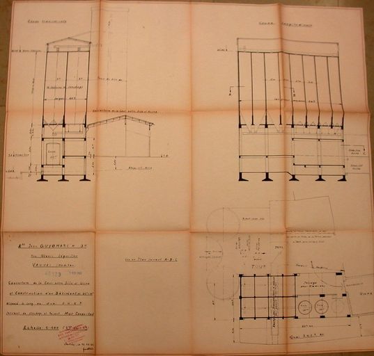 Construction d'un bâtiment entre le silo et l'usine approuvé le 22 aout 1962 : coupe. AM Vannes 5I162.Immatriculation