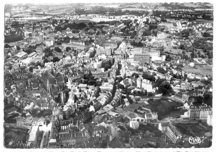 Vue aérienne du quartier Mené vers 1950. Carte postale Cim, Macon. Fonds privé.Immatriculation