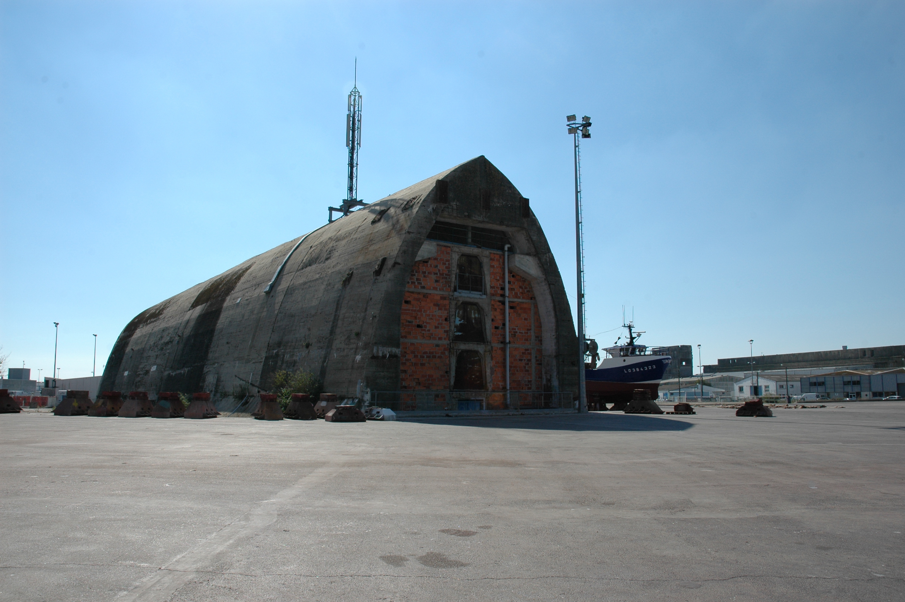 Dom-bunker Est dit "T5" puis entrepôt, aire de réparation navale, port de pêche de Keroman (Lorient),