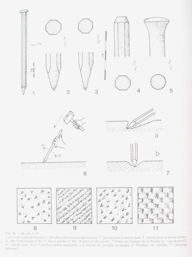 Dans : "L'outillage traditionnel du tailleur de pierre de l'Antiquité à nos jours" /. Jean-Claude Bessac, Paris : Edition du CNRS, 1993, p 108.Dessin.