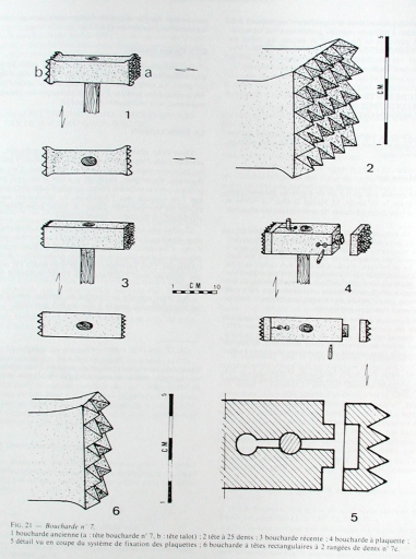 Dans : "L'outillage traditionnel du tailleur de pierre de l'Antiquité à nos jours" /. Jean-Claude Bessac, Paris : Edition du CNRS, 1993, p 76.Dessin.