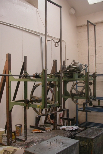 Machine à revêtir par enrobage (machine à vernir les manches de pinceaux),