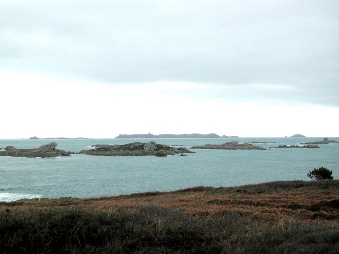 Vue depuis la côte de Bringuiller vers les îlots de l'est et les Sept-ÎlesImmatriculation
