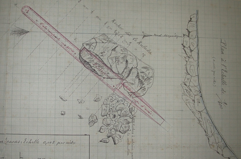 Plan du rocher du Ruludu avec les ouvrages projetés : cale rampante, plateforme et rampe d'accès, 1886 (AD 22)Immatriculation