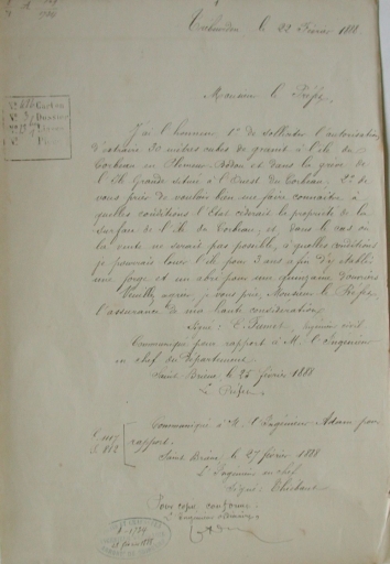 Demande de concession de l'Île au Corbeau, 27 février 1888 (AD 22)Immatriculation