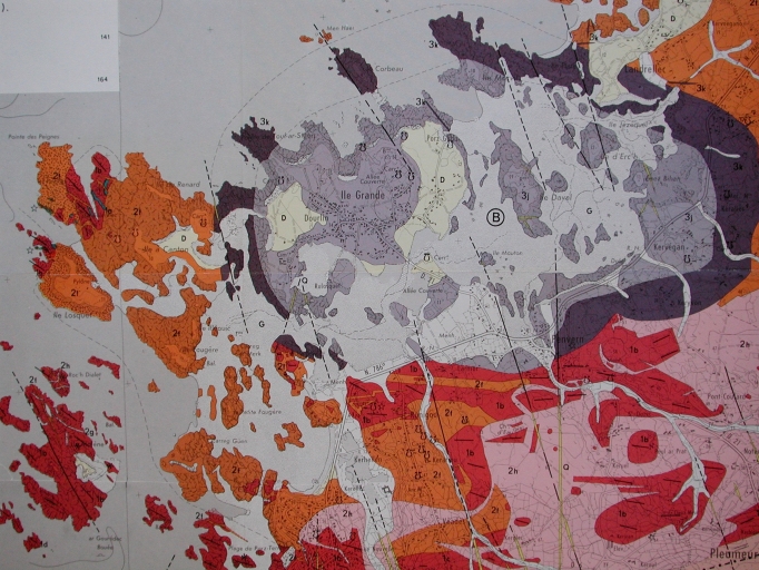 Pleumeur-Bodou, détail de l'Île-Grande à Bringuiller : carte géologique du complexe granitique du centre de Ploumanac'h (CNRS-UBO, collection particulière)Immatriculation