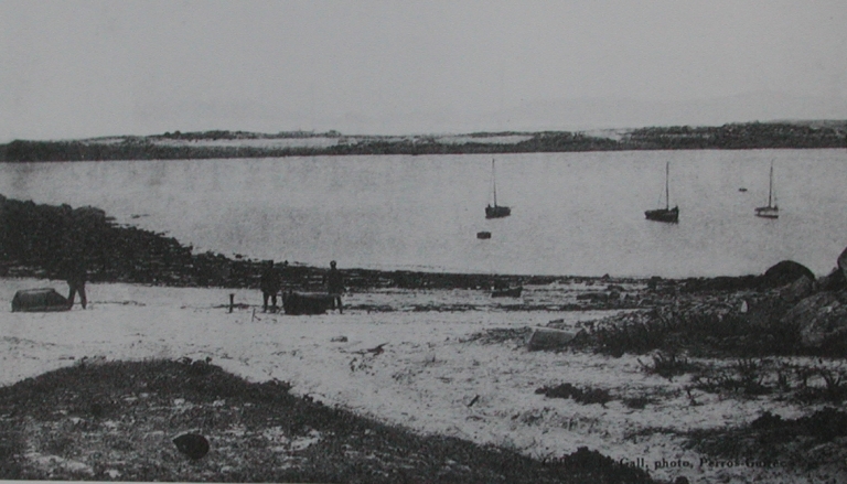 Port Gélin au début du 20ème siècle : remarquer la coque noire des bateaux goémoniers devant l'Île Morvil (collection particulière)Immatriculation