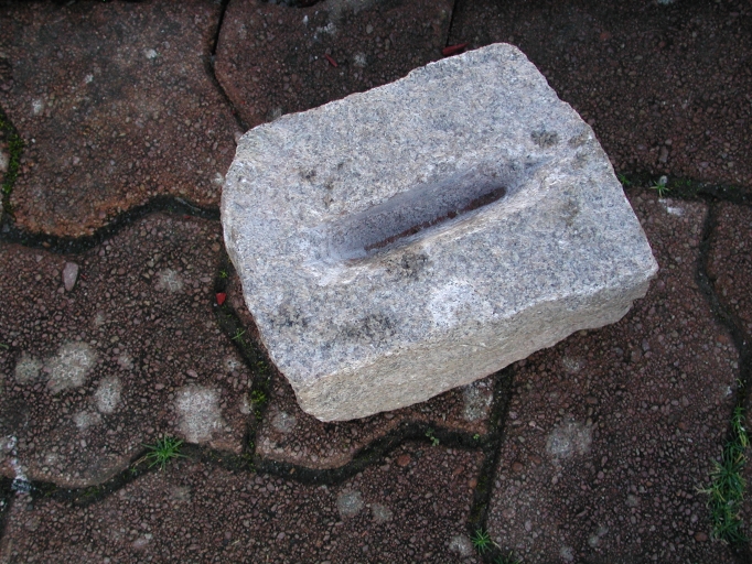 Technique traditionnelle pour fendre une pierre à l'aide de coins en bois arrosés d'eau dans une fente préparée au poinçon (UTL Lannion)Immatriculation