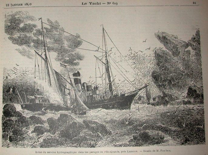 Dans "Aviso dans les parages de l'Ile-Grande" / L.M. Faudacq, Paris : Le Yacht, n° 619, 1894.