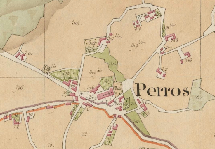 Perros-Guirec, le bourg. Extrait du plan par masse de cultures de 1805 (AD 22)Immatriculation