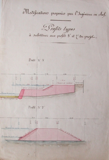 Modifications proposées par les ingénieurs : profil type de la digue avec le chemin de ceinture, en 1865 (AD 22)Immatriculation